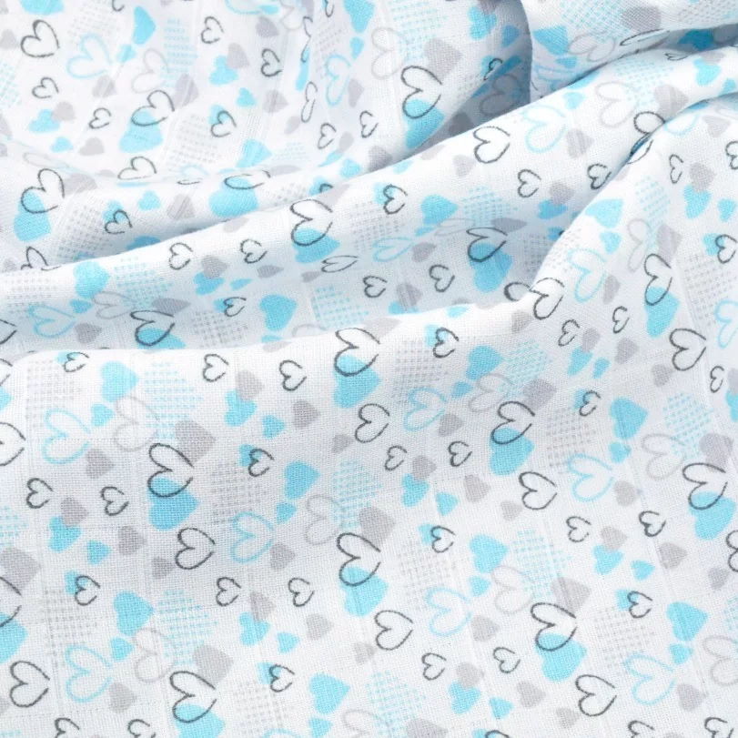 Bavlněná tetra mušelínová zavinovačka/osuška/deka 110x110cm PREMIUM - Drobná modrá a šedá srdíčkaVýrobek ušijeme a odešleme do 4-6 pracovních dní od zaplacení240 Kč/ ks
