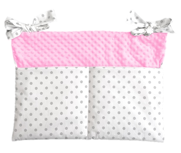 Kapsář na postýlku s výplní MINKY/Bavlna - světle růžové MINKY/Šedé puntíky na bílé (1cm)