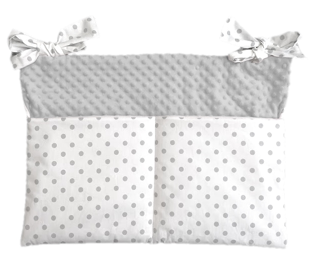 Praktický kapsář určený na postýlku o velikosti 120x60cm. Kapsář je podšitý a vyrobený ze dvou druhů materiálu - z hebkého minky a bavlny. Kapsář se uvazuje bavlněnou stuhou ve stejném designu.