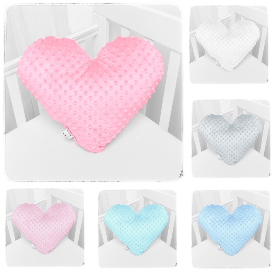 Úžasná hebká dekorace do postýlky či dětského pokoje. Velmi příjemný polštářek z materiálu MINKY ve tvaru srdíčka.