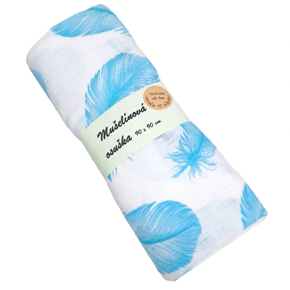 Mušelínová tetra osuška PREMIUM - Aqua modrá pírka na bíléSkladem (zboží expedujeme do 1-2 pracovních dní)160 Kč/ ks