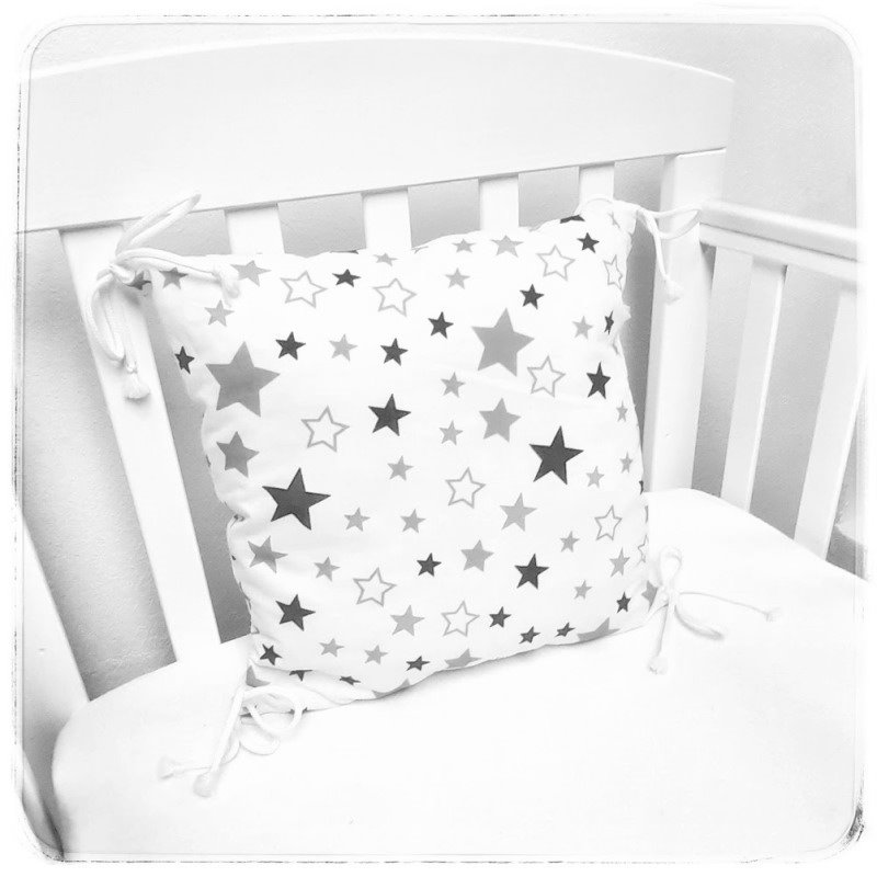 - Polštářek na polštářkový mantinel do postýlky - Šedé hvězdy na bílé