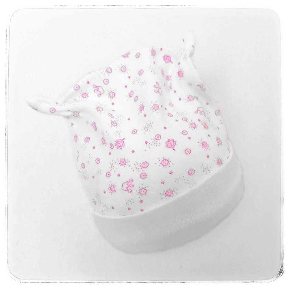 - Agnesion Úpletová čepička velikost 68/74 (2) s růžky - bílá potisk drobné světle růžové obrázky