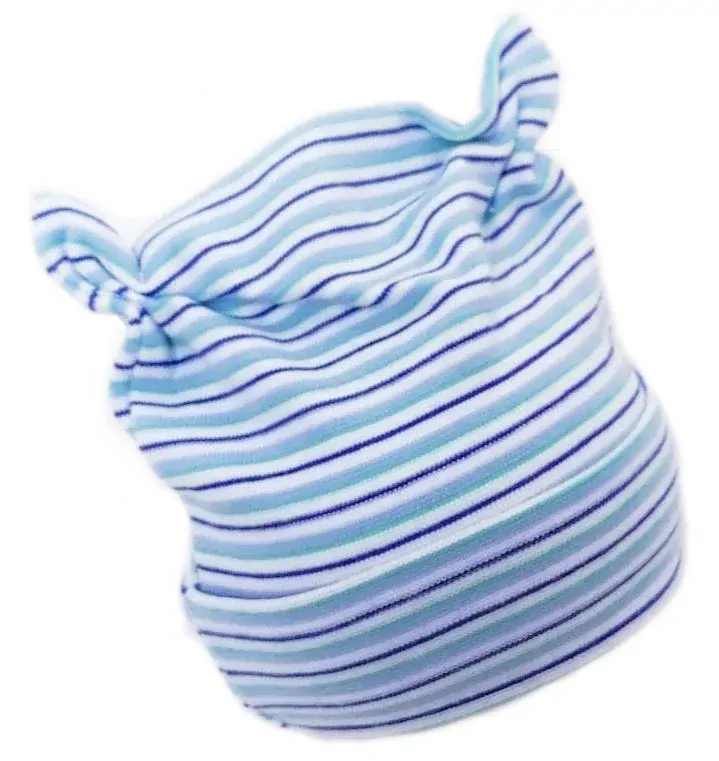 Klasická jarní/podzimní čepička s růžky velikost 68/74 (2) z bavlněného elastického úpletu. Čepička dobře drží na hlavičce. Materiál: 95%bavlna, 5% elastan. Tradiční český výrobce z Rožnova p.R.