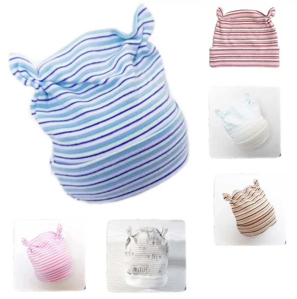 - Agnesion Úpletová čepička velikost 68/74 (2) s růžky - proužky - 1 ks