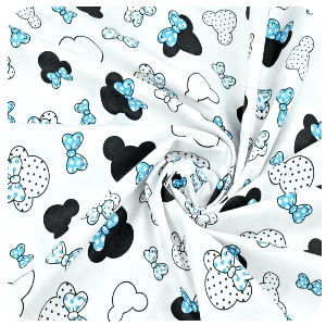 B010 - VZORNÍK - Bavlněné plátno klasik - Minnie aqua mašličky na bílé (hlavičky malé)Skladem/ ks