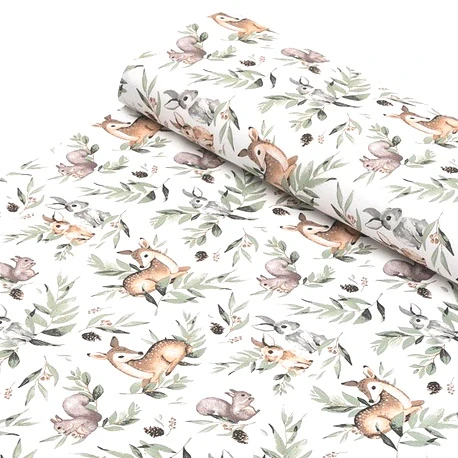 B097 - VZORNÍK - Bavlněné plátno klasik - Srnečci a veverky na listechSkladem/ ks