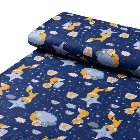 Metráž 100% bavlna plátno 10 cm - Lišky v noci na tmavě modré