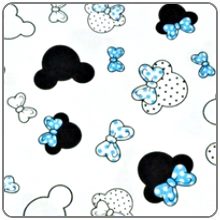 Metráž 100% bavlna plátno 10 cm - Minnie aqua modré mašličky na bílé (malé hlavičky)