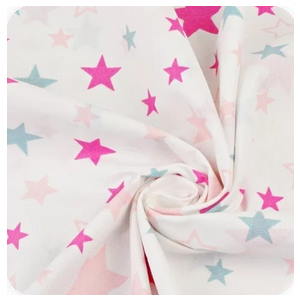 Metráž 100% bavlna plátno 10 cm - Růžové hvězdy na bílé