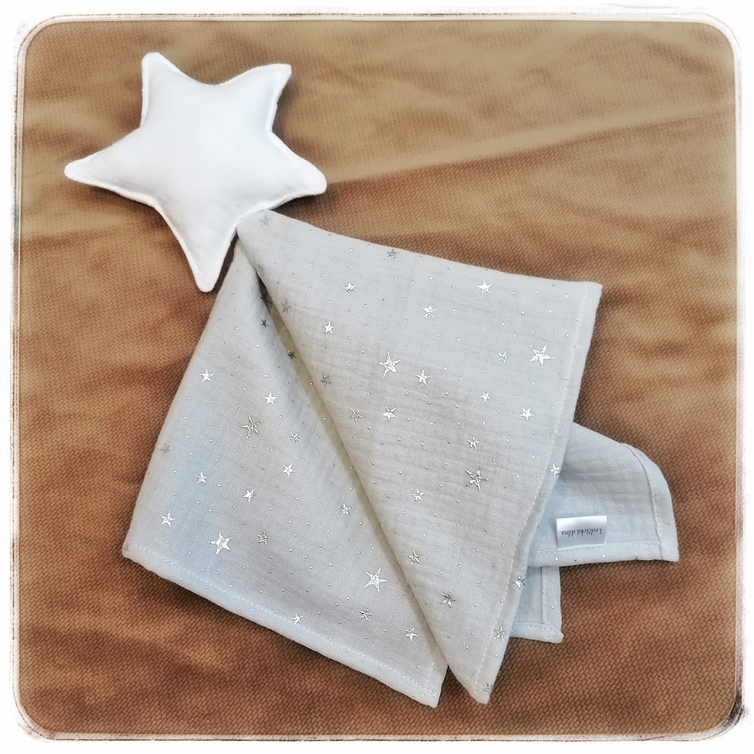 Mušelínový usínáček/mazlíček Star - White/Glacier grey with Silver StarsVýrobek ušijeme a odešleme do 4-6 pracovních dní od zaplacení360 Kč/ ks