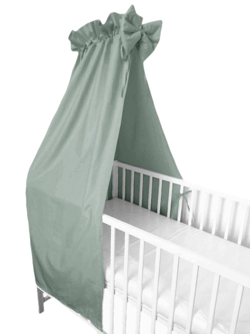 Klasická bavlněná nebesa na postýlku s mašlí, barva šalvějově zelená. Materiál kvalitní atestované bavlněné plátno.