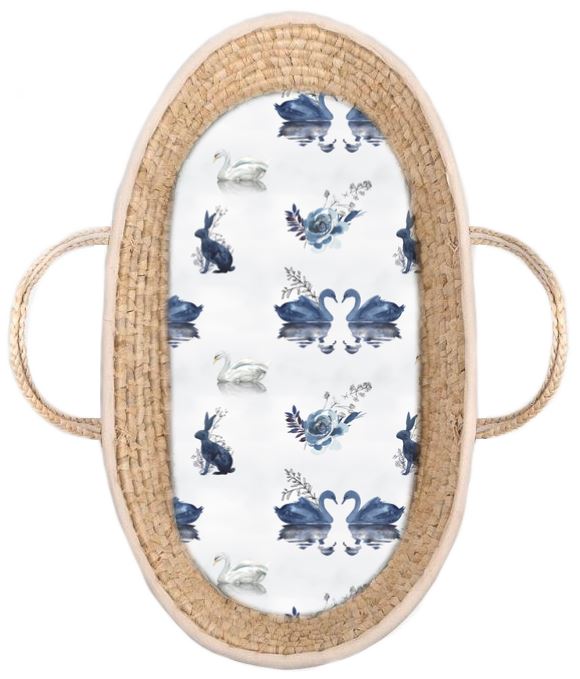 Ledčická dílna - Prostěradlo do kočárku nebo košíku bavlna PREMIUM - Modré labutě