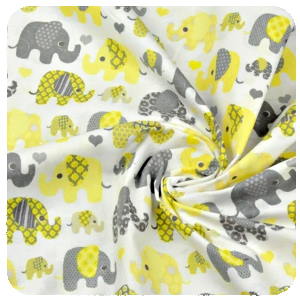 B029 - VZORNÍK - Bavlněné plátno klasik - Žlutí šedí sloníci na bíléSkladem/ ks