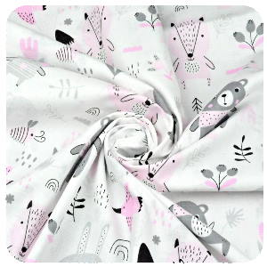 - B004 - VZORNÍK - Bavlněné plátno klasik - Zvířátka šedá růžová na bílé