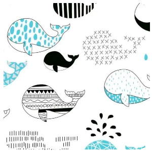 Klasické bavlněné plátno Velryby na bílé.